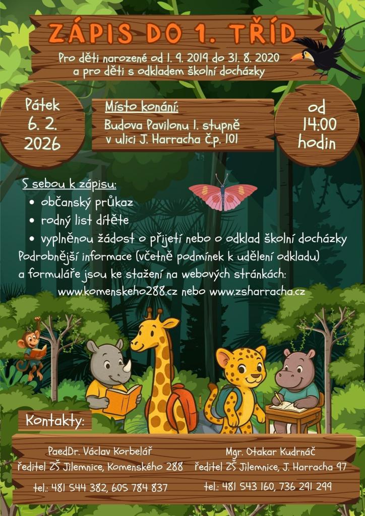 Formuláře a podrobné informace najdete na www.komenskeho288.cz nebo www.zsharracha.cz.