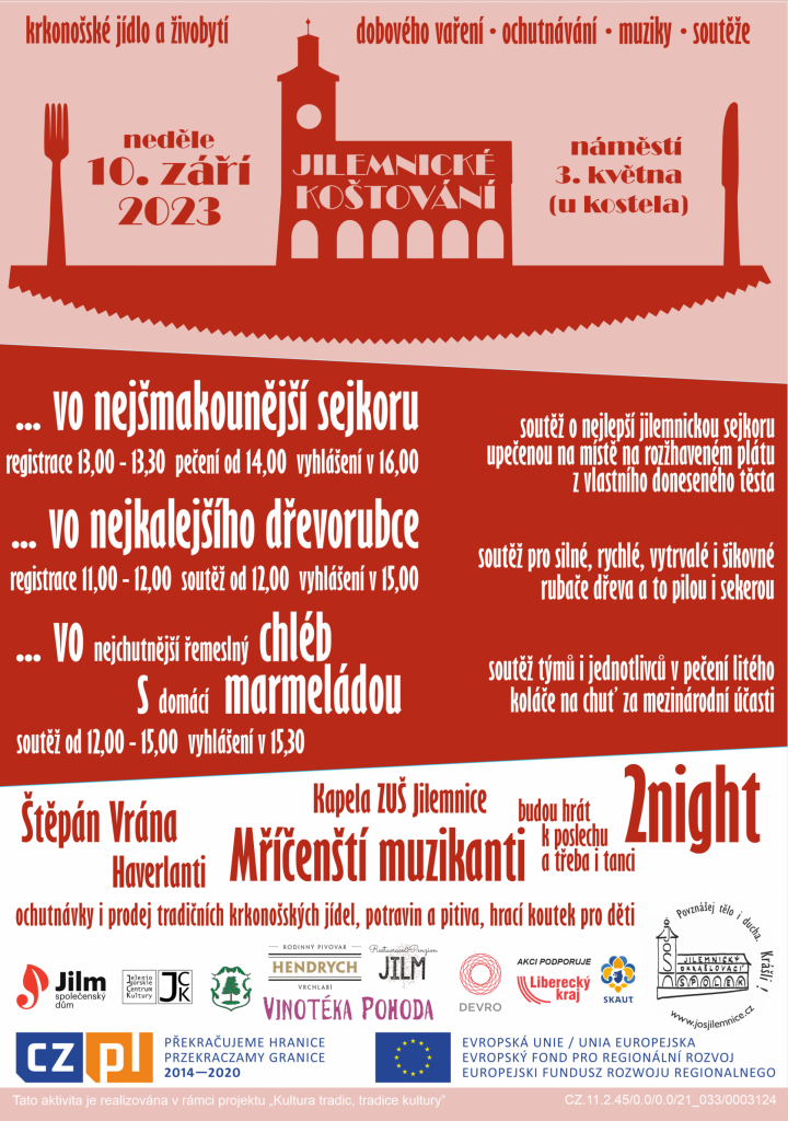 Šestý ročník festivalu o vaření a živobytí v Jilemnici a krkonošském okolí se soutěží "...vo nejšmakounější sejkoru", kterou si účastníci upečou přímo na místě z těsta, které si doma sami připraví a jež ohodnotí odborná porota. A opět i s kláním "...vo nejkalejšího dřevorubce", kdy přímo na místě budeme řezat a sekat na sílu, rychlost i krásu. Doprovodná soutěž s mezinárodní účastí je tento rok zaměřena na domácí řemeslný chléb s marmeládou, kdy o vítězi rozhodnou návštěvníci. Akce je určena veřejnosti a doprovází ji dobré jídlo, pití, muzika a pohoda.