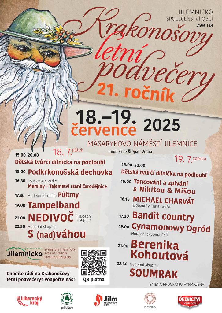 Krakonošovy letní podvečery probíhají na Masarykově náměstí v Jilemnici, kde je po celou dobu přehlídky instalováno zakryté jeviště. Pro pohodlí diváků jsou speciálně na tuto akci na náměstí naistalovány lavičky, stoly a rozkládací stany jako ochrana proti slunci i dešti. Pro dospělé návštěvníky jsou pak určeny prodejní řemeslné stánky. Samozřejmostí jsou stánky s občerstvením po celé dva dny a zázemí veřejného a mobilního WC zdarma všem návštěvníkům. Vstup na tuto akci je zdarma.