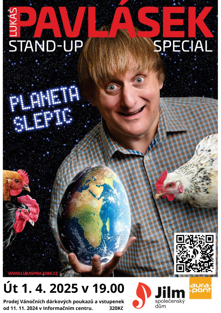 One-man-show Lukáše Pavláska Planeta slepic je stand-up speciál, ve kterém se koukneme, jaké vyhlídky má naše slavná civilizace, kde si každý myslí, že má pravdu, stále jen nakupuje nepotřebné věci a kde vedle sebe žijí tak rozdílné bytosti, jako jsou ženy, muži a psi. Dozvíme se, co strašného se stane, když si doma zapomenete mobilní telefon. Užijeme si svých pět minut slávy v televizní soutěži, naučíme se chovat v nákupním centru, zavoláme si na horkou linku a zjistíme, proč přírodu každou sobotu čeká nápor idiotů z města. A na závěr dojdeme k tomu, že na téhle planetě nakonec přežijí jen slepice. Přijďte se zasmát tomu, co znáte ze života. Přijďte se podívat na Planetu slepic.