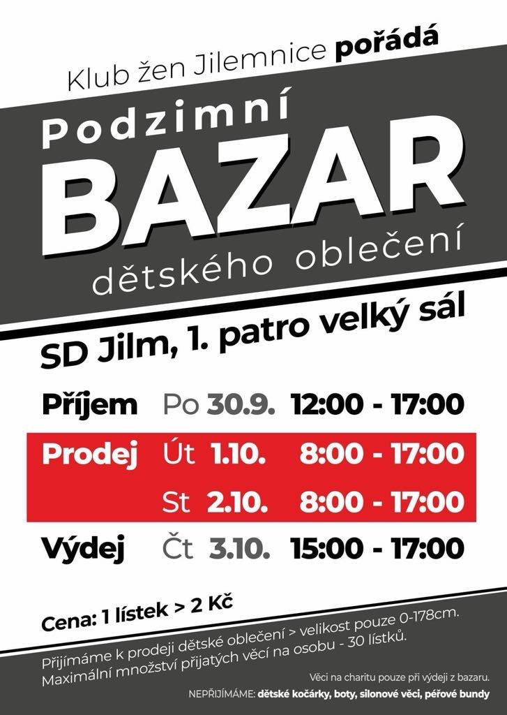 Klub žen Jilemnice pořádá podzimní bazar dětského oblečení