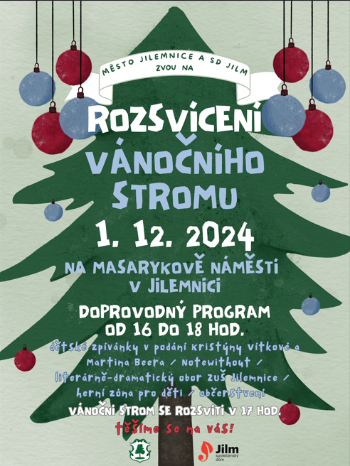 POJĎME SPOLEČNĚ ZAHÁJIT ADVENT ROZSVÍCENÍM VÁNOČNÍHO STROMU V JILEMNICI.