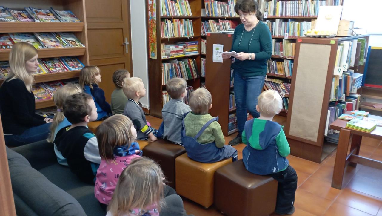 Děti z MŠ poznávají knihovnu a knížky. Besedy pro děti na různá témata.